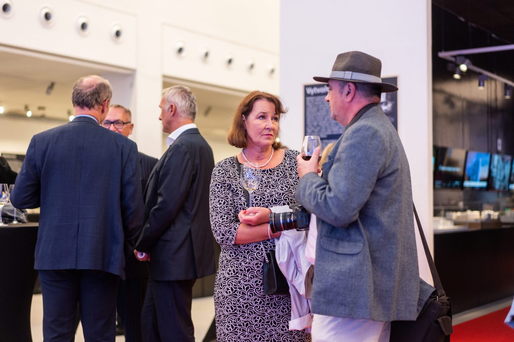 Součástí úvodního slova vernisáže byla i milá povinnost předat prezidentovi Mezinárodní Unie Architektů (UIA) José Luisi Cortésovi Cenu Organizátorů Jože Plečnika za celoživotní zásluhy o rozvoj architektonické a urbanistické kultury a dlouholetou činnost v UIA. Zároveň jsme měli příležitost taktéž poděkovat Thomasi Vonierovi, bývalému prezidentovi UIA za zásluhy o rozvoj architektonické kultury prostřednictvím UIA a dlouhodobou spolupráci s festivalem Architecture Week Praha. Diplomy předal prof. Vladimír Šlapeta jako předseda přípravného výboru Ceny Jože Plečnika. Na závěr moderátor Václav Žmolík předal slovo patronovi publikace Alfabet, Česká moderní architektura – doc. Bohuslavu Svobodovi, který popřál Velké Praze dalších 100 let úspěchů.
