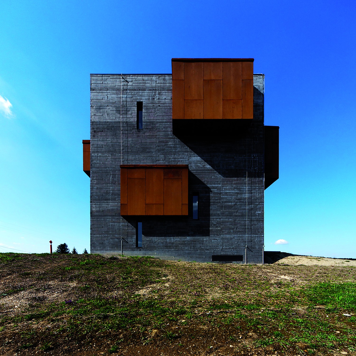 Ikonické muzeum leží 200 kilometrů západně od Budapeště. Vybraný pozemek je ploché místo mezi městem a bývalou sopkou Ság. Místo abychom přímočaře využili téma, například vytvořili budovu muzea ve tvaru sopky, chtěli jsme zachytit pravou podstatu místa. Suroviny, homogenní šedá betonu, barva cortenové oceli inspirovaná lávou a sopouchové uspořádání navozují podstatu vulkánu. Při vstupu do rozlehlého interiéru budovy uvidí návštěvník dvě chytlavé atrakce. Na první pohled upoutá pozornost vertikálně otevřený prostor. O pět pater výš vpouští dovnitř malé okno paprsek světla vytvářející „erupční“ bod na ploché střeše. Na opačné straně působí průmyslové materiály na fasádě v souladu s interiérem: obnažené betonové zdi, tmavě šedé podlahy, ocelové schodiště a chodba a kostky z cortenové oceli viditelné i zvenčí. Různá výška a umístění můstků spojuje rozdílné hmoty