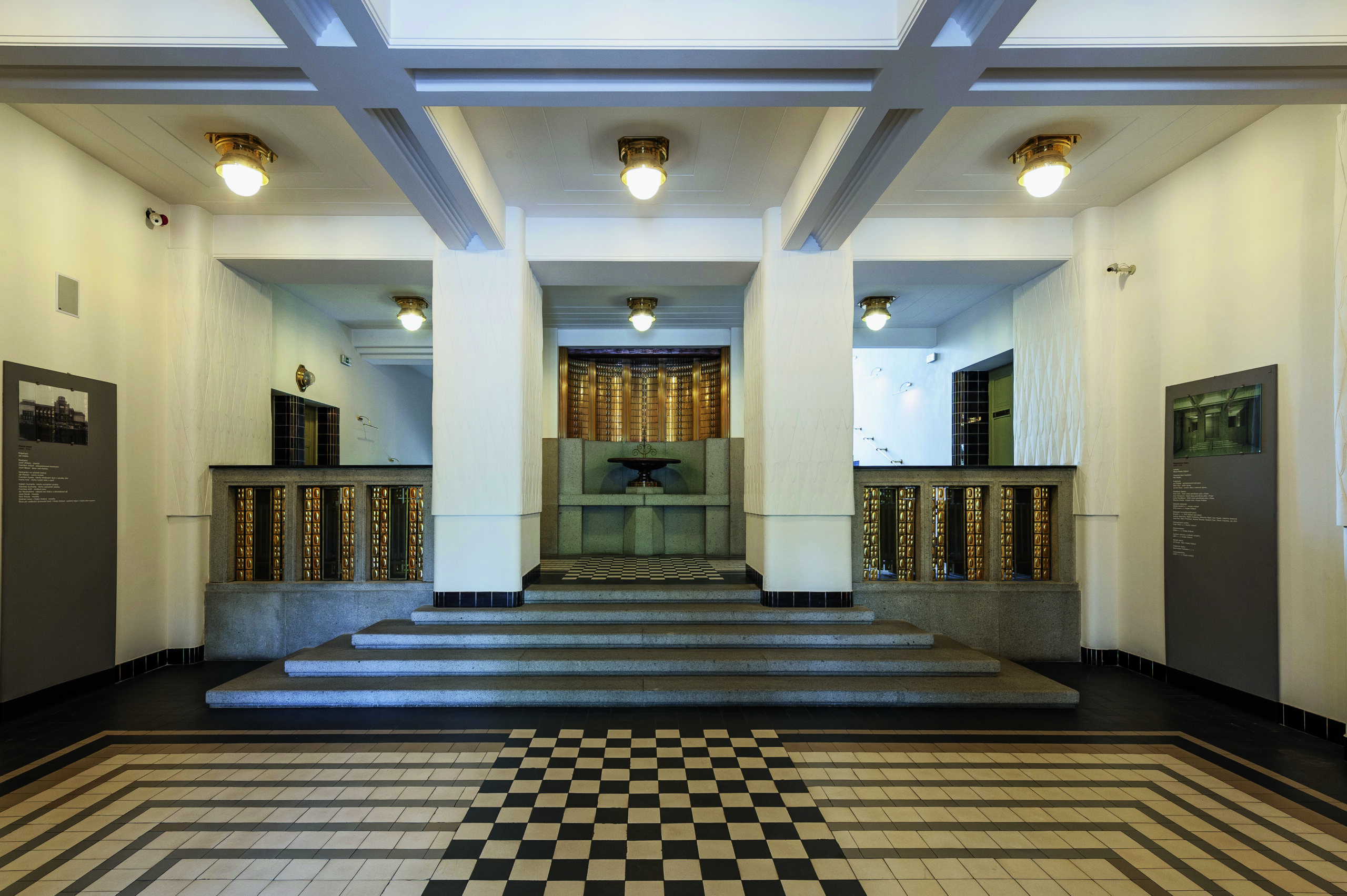 Panel z výstavy Czech modern architecture, konané v Evropském parlamentu v Bruselu v roce 2025
