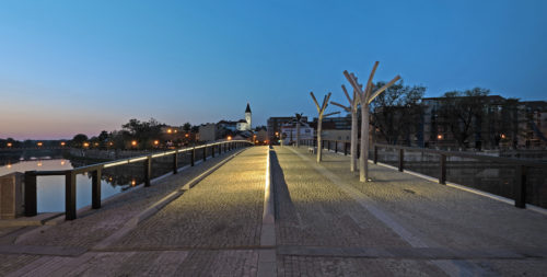 Tyršův most vystavěný na místě provizorní pěší lávky autoři nepojali jen jako prostý komunikační bod na cestě do historického centra, nýbrž i jako místo k zastavení, spočinutí či společenským setkáním. Při projektu se nechali inspirovat formou původního betonového mostu zničeného na sklonku druhé světové války – využili jeho základů, shodně jej rozčlenili do tří polí a ve středu vzepjali. Celkové pojetí a především unikátní sochařská výzdoba inspirovaná městským erbem i symbolickými a přírodními motivy mu dodala svěží soudobý výraz.
