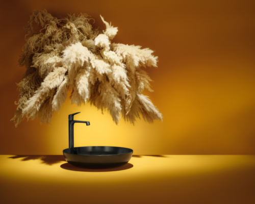 Obrazový materiál: KALDEWEI / Reinhard Hunger, Zobrazený produkt: Umyvadlová mísa Kaldewei Miena v city antracit matné v kombinaci s pampovou trávou (Cortaderia selloana)