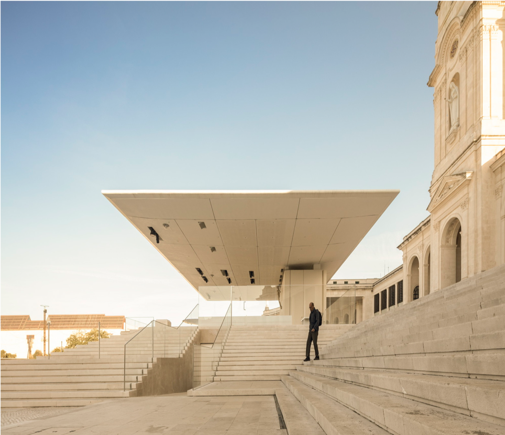 Architektura budovy má zásah Filipa Morodera pro obraz Krista, João Mendes Ribeiro pro liturgická místa a Fernandu Fragateiro pro sochu Matérie Espiritual. Architektonická intervence má na posvátném místě velký scénografický význam a my jsme ji chtěli vyústit v úžasné a harmonické prostředí na rozlehlém modlitebním náměstí.
