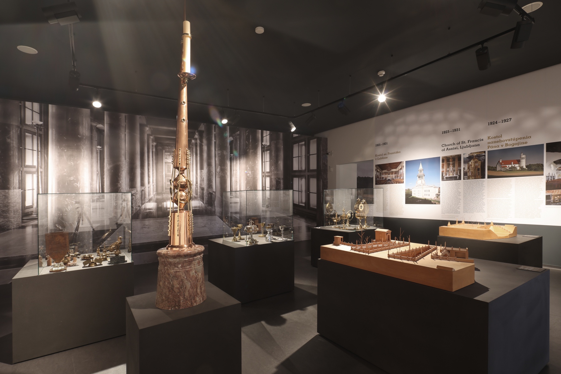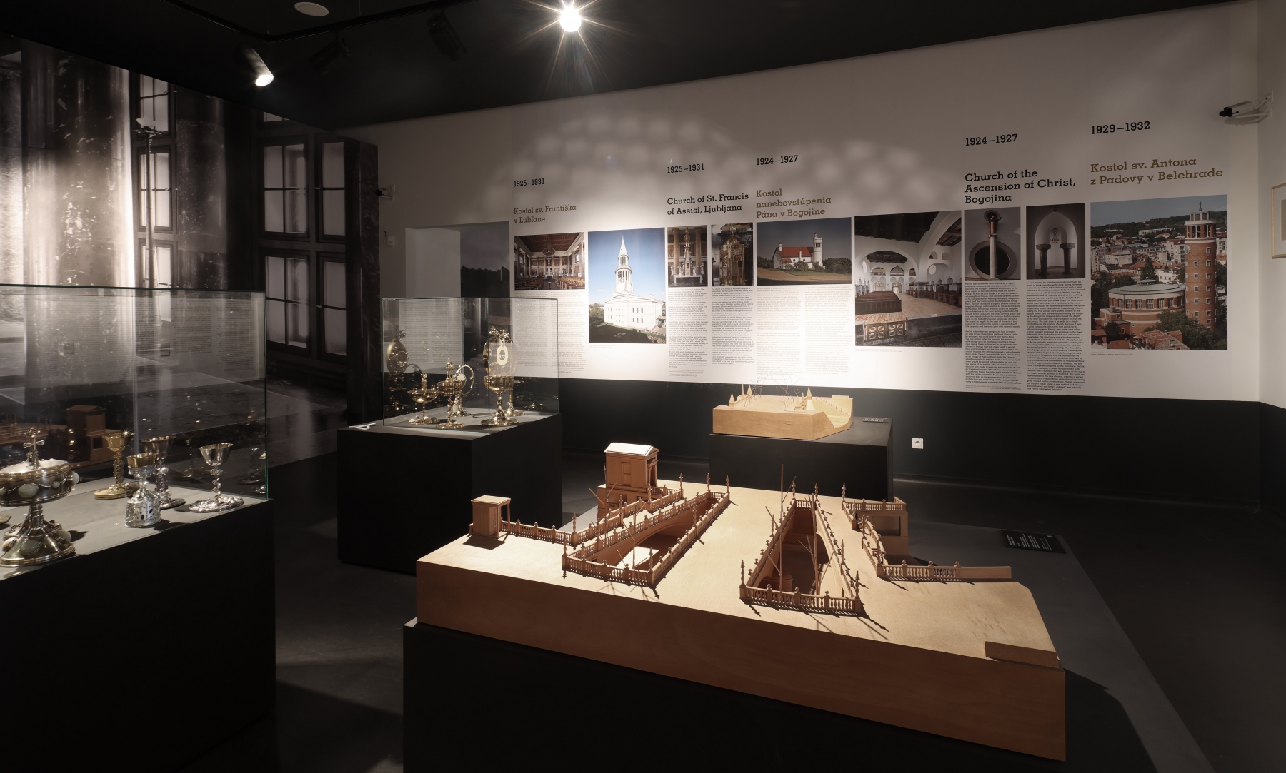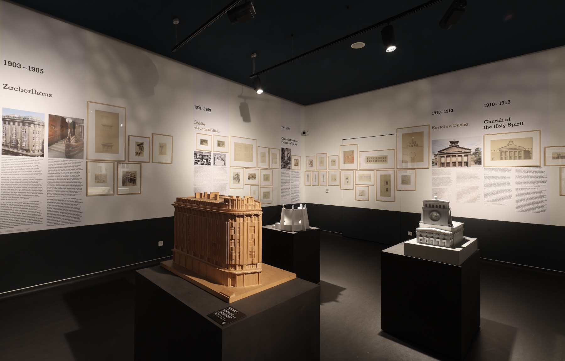 Návštěvníci se mohou těšit na bohatou kolekci Plečnikových modelů, originálních kreseb, archivních dokumentů a artefaktů ze sbírek z Česka, Slovinska, Rakouska i Slovenska. Významná část expozice je věnována Plečnikovu vztahu k Slovensku – tematicky zde zní inspirace lidovým uměním, práce jeho žáků i díla spjatá s Dušanem Jurkovičem, se kterým byl Plečnik v kontaktu. Mezi exponáty najdete model Mohyly na Bradle, Jurkovičovu vilu, nábytek ze studentského internátu i kříž z vojenského hřbitovu v Haliči.